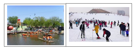 高科技农业种植、南北名贵花卉、体验丰富多彩的瓜果采摘的同时,又能参与多种惊险、刺激的娱乐活动——蹦极、高空滑索、滑草(冬季滑雪)、攀岩。