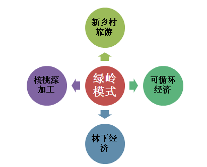 以核桃园为依托,做精做细做强做响核桃品牌,并配以林下经济、核桃深加工、新乡村旅游、可循环经济、益智,延展绿色农业产业链条,发展创意农业,开展观光农业、户外运动、康体休闲活动,以养生农业为提升方向,集游乐、休闲、体验、婚庆、度假于一体的原生态、高端生活的共同体。